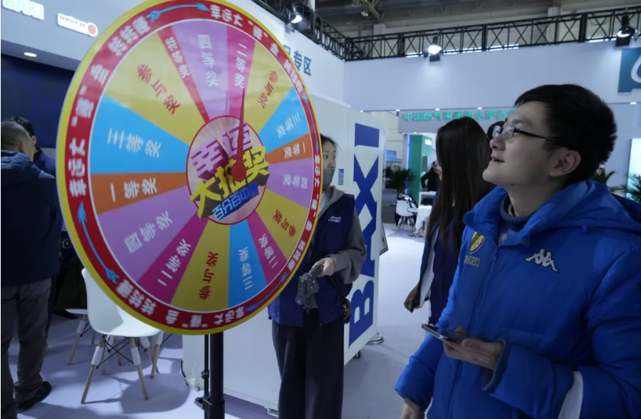 除了精彩的产品展示,展区还特别设置了趣味互动环节,点燃了现场的热情!我们推出了“幸运大转盘”抽奖活动,100%中奖率让每一位参与者都能收获惊喜,特色奖品拿到手软,吸引了无数参展人员踊跃参与。现场气氛热烈,惊喜大奖频频被抽中,幸运加倍,欢笑不断!此外,我们还通过线上直播与更多观众互动,吸引了超过3w+的观众在线观看,共同见证此次盛会。线上线下联动,让庆东纳碧安的品牌魅力辐射更广,为展会增添了更多活力与乐趣!